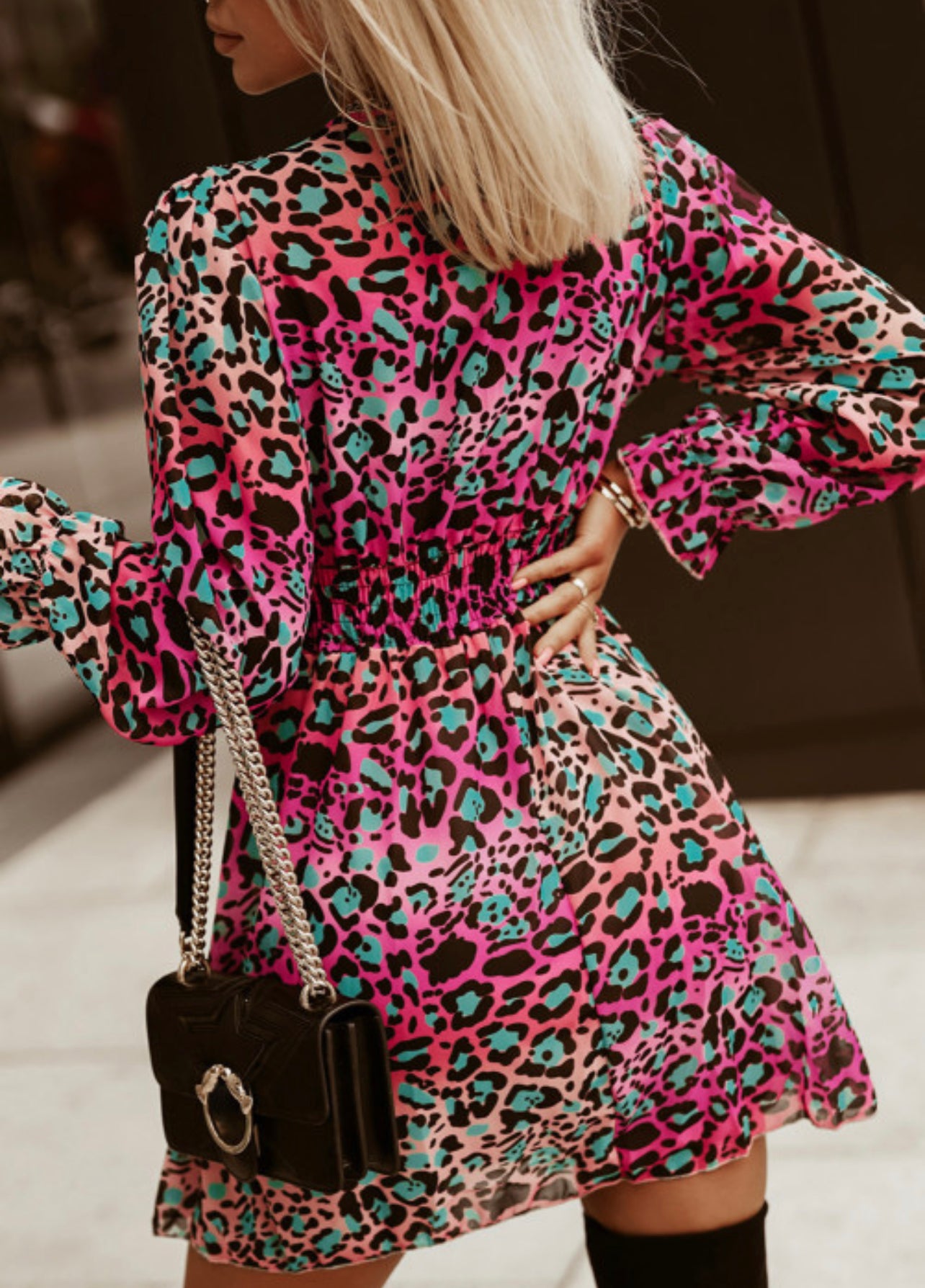 Rose V Neck Leopard Dress