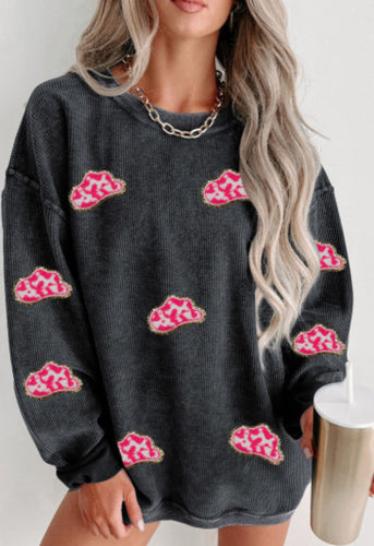 Blue Ribbed Exposed Seam Knit V Neck Long Sleeve Top